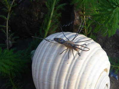 Começaram a aparecer estranhos insetos com asas de arame. O primeiro apareceu pousado em uma alface d'água, curtindo o visual.